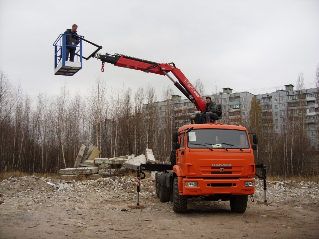 Применение монтажной корзины не мешает крану-манипулятору выполнять свою основную функцию – подъем грузов.