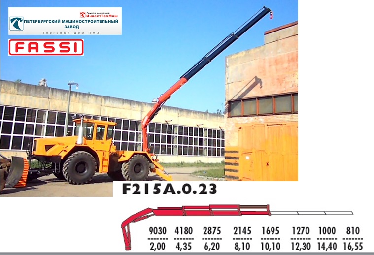 Благодаря расположению манипулятора FASSI F215A023 на заднем свесе трактора, все преимущества манипулятора FASSI можно использовать полностью. Например , можно подобраться в плотную к грузу и поднять 9 тонн, или вытянуть ее на все 10 метров гидравлического телескопа, и поднять там все 1695 кг. Внедорожные возможности трактора, позволяют эксплуатировать манипулятор при полном отсутствии дорог.