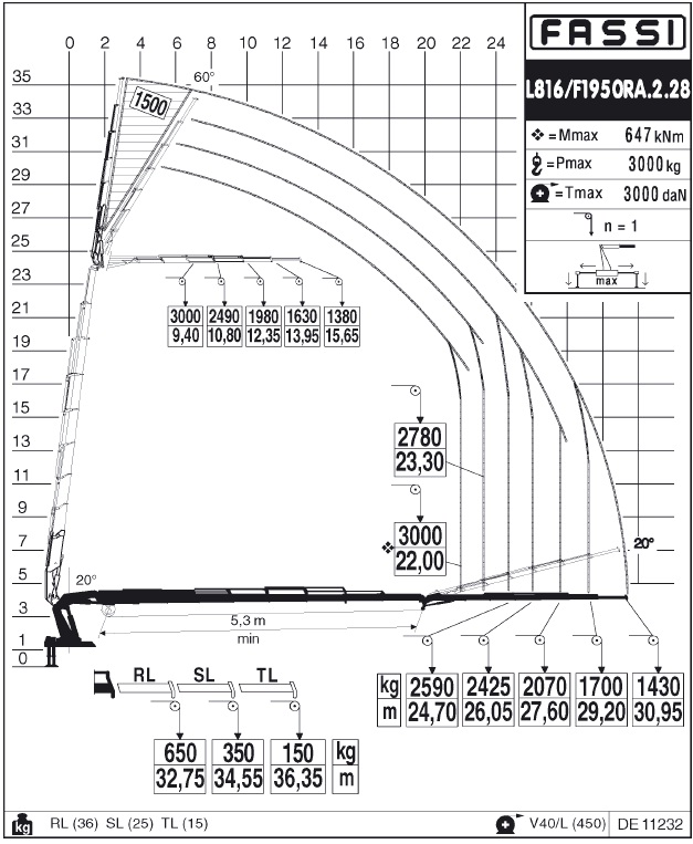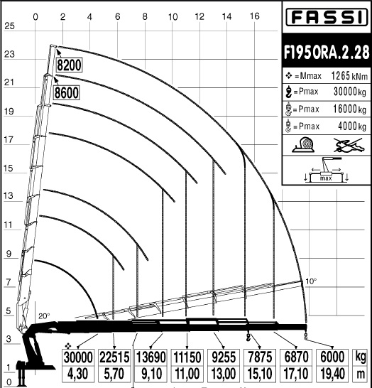 Такой кран на шасси Скания , имеет вылет 19,4 метра , где поднимает целых 6 (!) Тонн. на коротком плече 5,7м - 22500кг! Масса самого КМУ, в такой комплектации , тоже внушает уважение - 15 тонн!