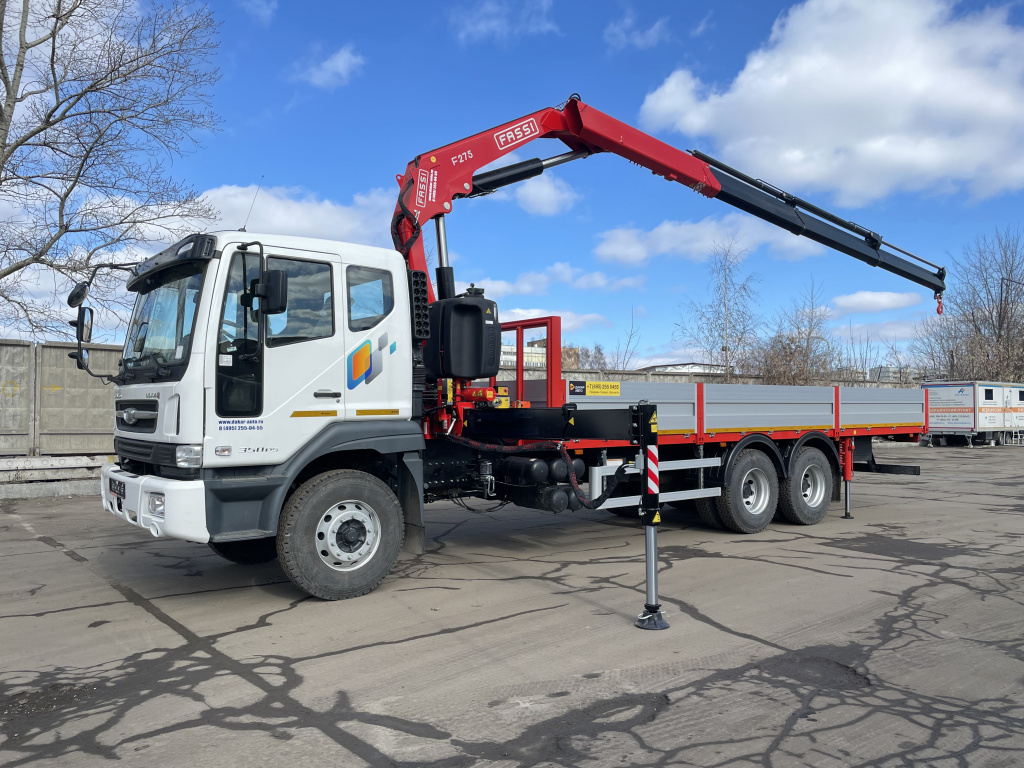 Уникальное сочетание: мощный кран F275A.0.23, установленный на прекрасный образец корейской техники, автомобиль Daewoo Novus CL8CF, с колесной базой 6x4, современный и выносливый.