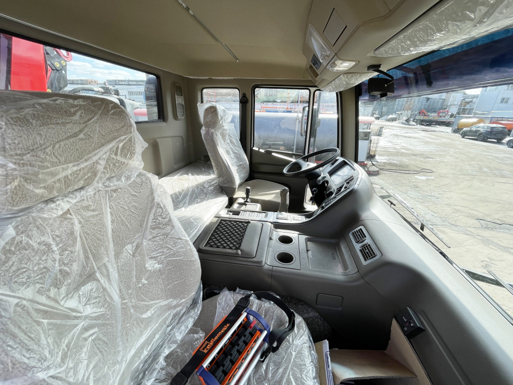 Грузоподъемность автомобиля составляет 17 т, для размещения которых предусмотрен весьма вместительный борт, с габаритами 8000 х 2550 х600 мм, выполненный из алюминия, со съемными стойками.