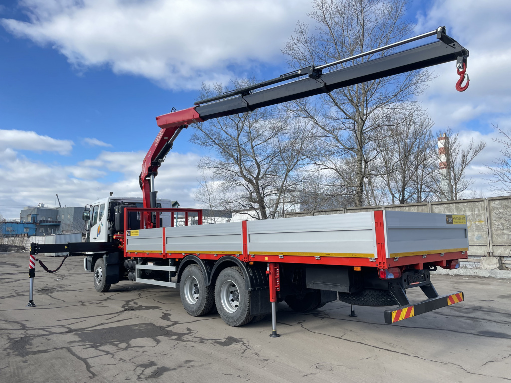 Монтаж КМУ выполнила компания РУСТРАК, она же изготовила высококачественный, вместительный борт.