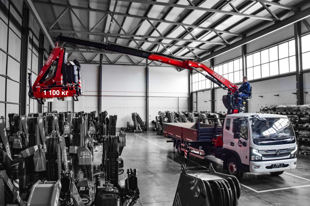 Автомобиль полной массой до 12т может взять на борт до 5 т груза, самостоятельно загрузив его в алюминиевую бортовую платформу с помощью установленного за кабиной гидравлического манипулятора.