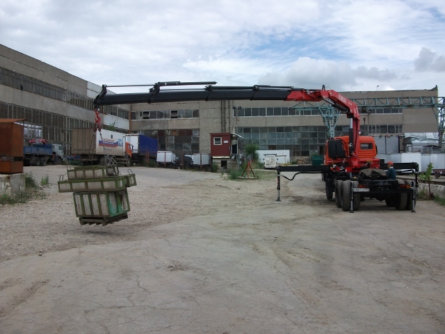 Мощный кран (грузоподъемностью 22,5тм) прекрасно справится с погрузкой и разгрузкой любого полуприцепа.