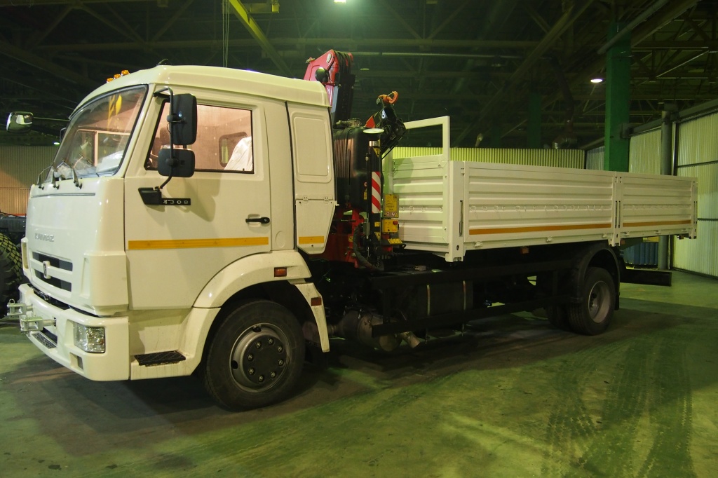 Четыре новых бортовых автомобиля КАМАЗ 65117 оснащенные кранами F245A.0.22, успешно пройдя испытания, приступили к работе сразу после Нового года.