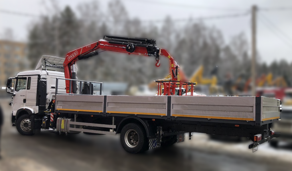 Благодаря небольшому собственному весу КМУ, который составляет 2 525 кг, кран мог быть установлен на двухосное шасси.