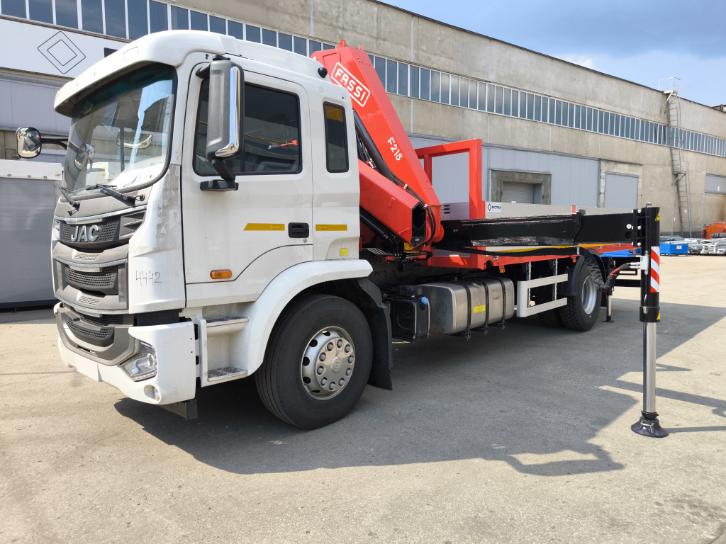 На базе JAC N200 Normal 4 х 2, за кабиной был установлен Fassi F215A.0.22 (максимальная грузоподъемность 9,2 т (!), максимальный вылет 8,05 м- 2315кг), а из высококачественного алюминиевого профиля была изготовлена вместительная платформа, длиной 6,5 м, с удобными откидными бортами.