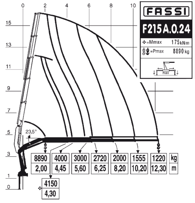 Основными достоинствами такого решения стали большой вылет стрелы крана - 12,30 м. (с грузоподъемностью в 1220 кг.) и с максимальной грузоподъемностью 8890кг (на вылете - 2,0 м). Гидравлическое раздвижение опор облегчает оператору подготовку крана к работе, и сокращает время к началу процесса эксплуатирования КМУ.