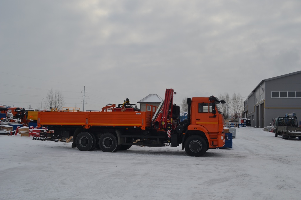 Компания СПМ пополнила парк спецтехники г. Пермь еще одним универсальным автомобилем: бортовым КАМАЗ 6520 с КМУ FASSI F215A.0.22