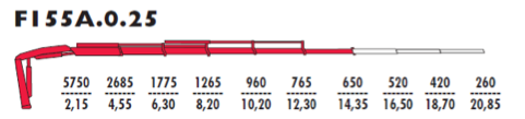 По желанию заказчика, завод FASSI предлагает краны F155A.0 со стрелой от 8м со склада или на заказ максимальный вылет 20,85м (включая механические секции)