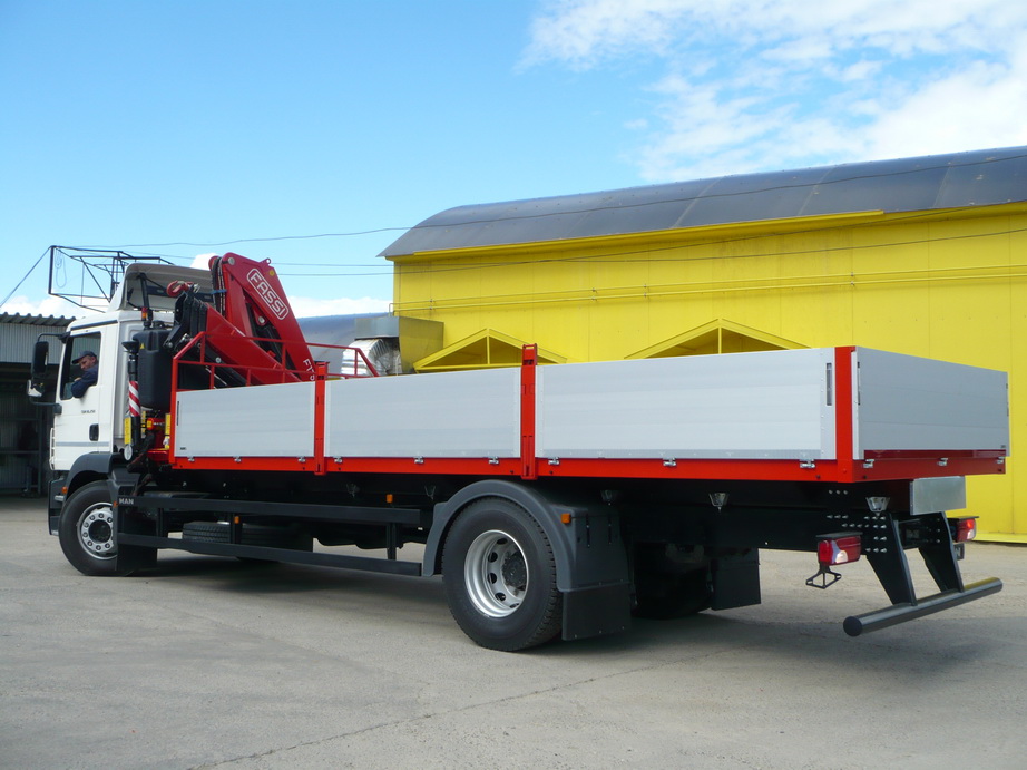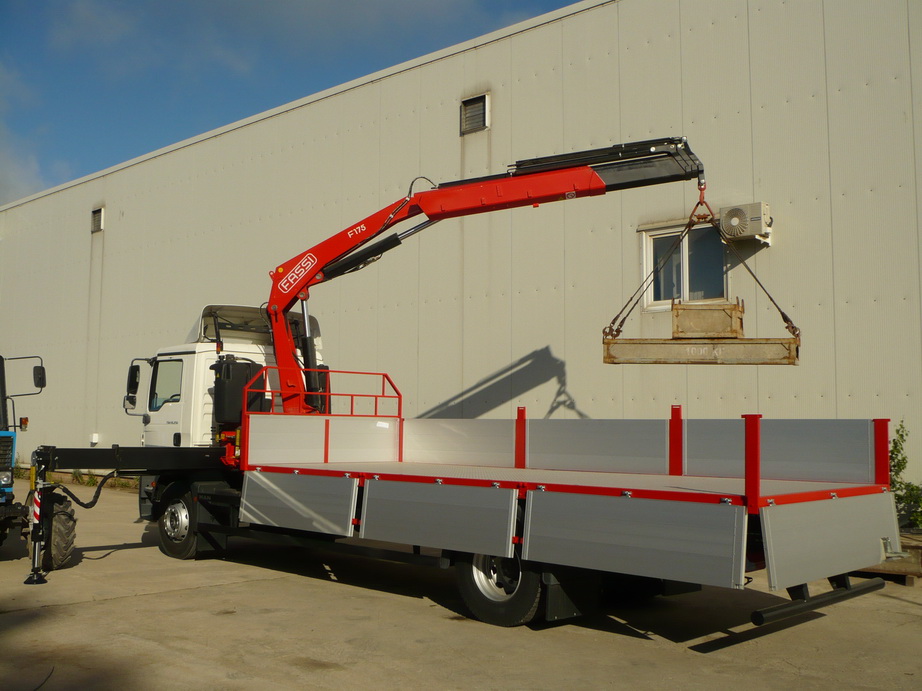 Компания «ТЕХПРО», выпустила на российские дороги MAN с КМУ FASSI. Отличительная черта «ТЕХПРО» умение подобрать безупречное сочетание: шасси и КМУ, а именно MAN TGM 18.250 и FASSI F175A.0.23. Вылет манипулятора позволяет свободно работать в радиусе 10м, а выбранное для крана дистанционное управление превращает работу в удовольствие.