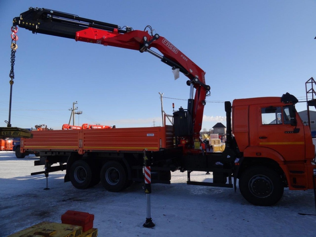 Совсем недавно выехал за ворота компании "СПМ", переданный заказчику бортовой КАМАЗ 6520 с манипулятором F385A.2.26, как уже готов к выдаче заказчику (компании "ФСК Инжиниринг") новый, не менее интересный автомобиль. За кабиной КАМАЗ 6520 установили кран F295A.2.27