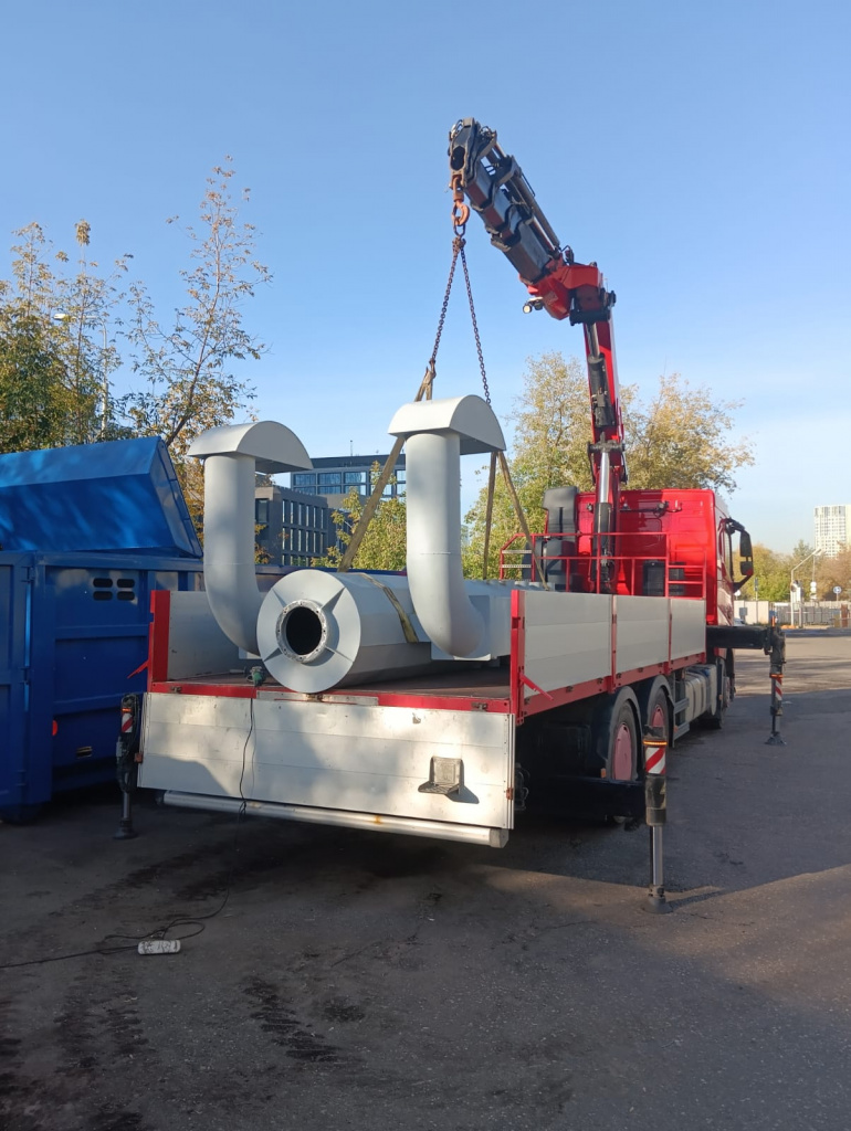 VOLVO с F365AC.2.26 – разгрузка мобильной снегоплавильной установки.