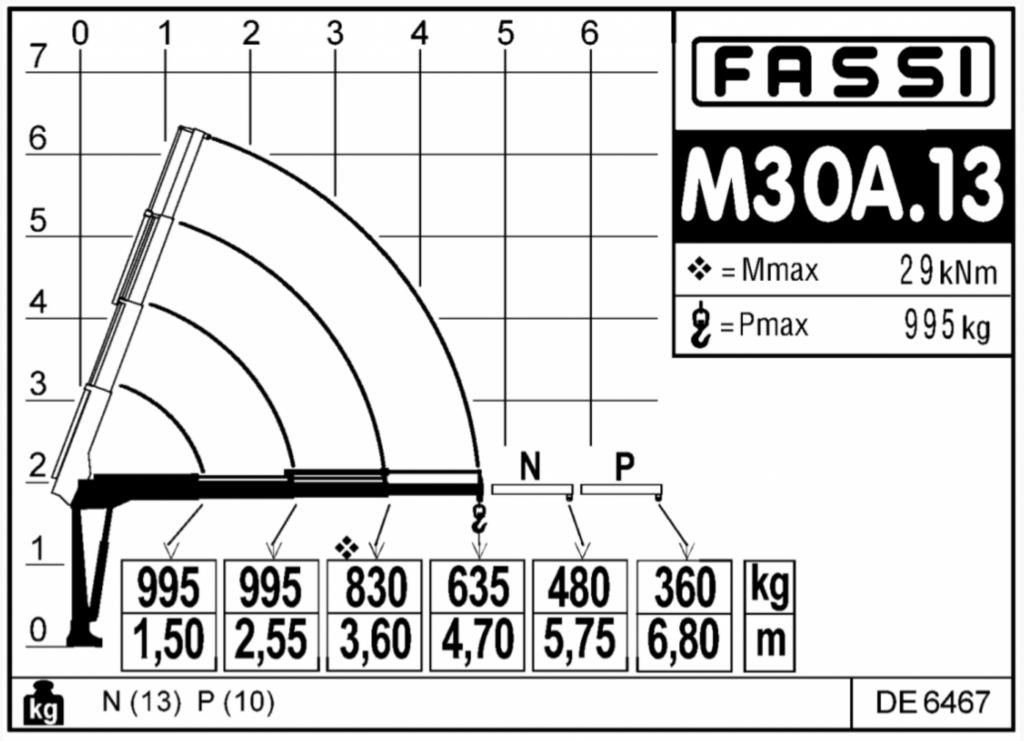 - Масштаб работы: возможность перевозки до 3000 кг груза, погрузку которого обеспечивает кран-манипулятор FASSI легкой серии M30A.13