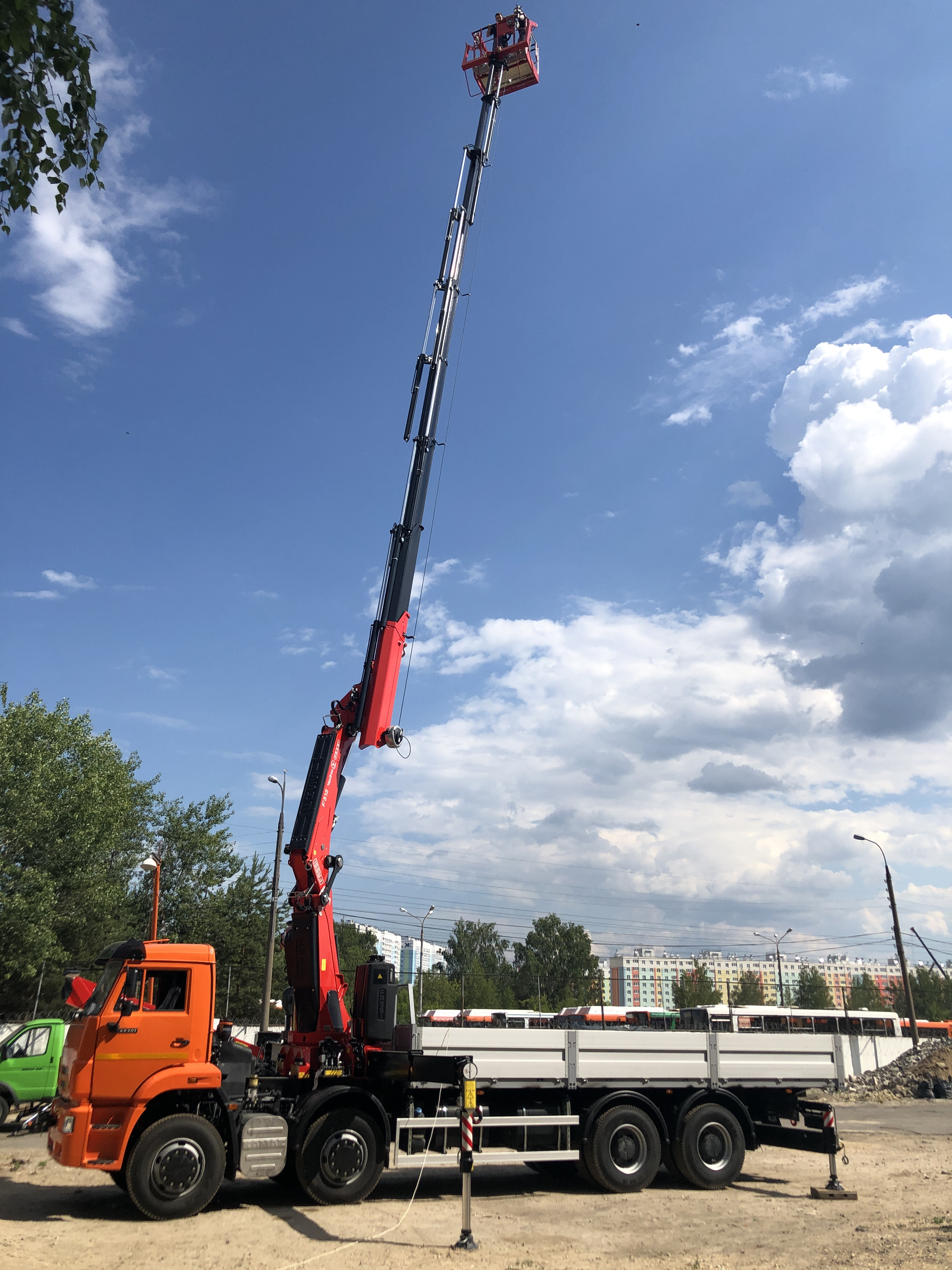 Крано-манипуляторные установки FASSI, которые монтируются на шасси грузового автомобиля, обладают возможностью использовать самое разное навесное оборудование. На последнюю секцию телескопического крана-манипулятора могут монтироваться монтажные корзины (люльки) для выполнения высотных работ.