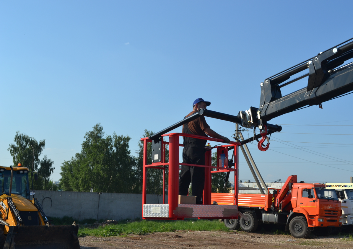 Применение монтажной корзины не мешает крану-манипулятору выполнять свою основную функцию – подъем грузов.