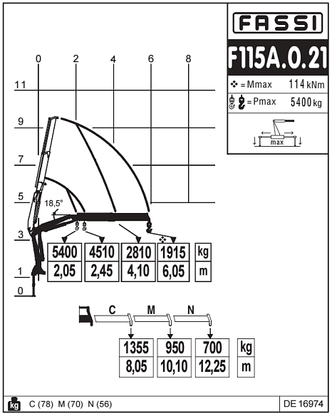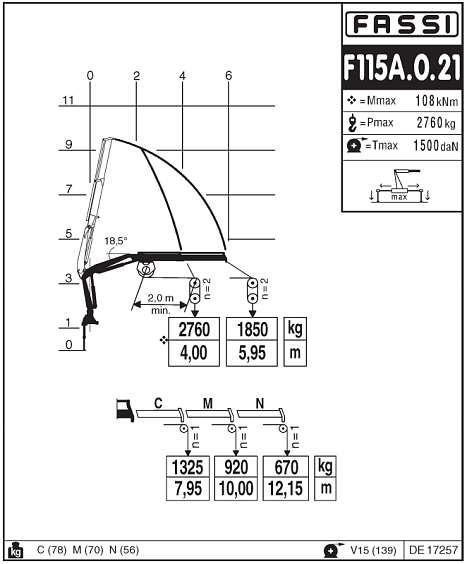 Модель F115A.0.21 (только на заказ) имеет максимальный гидравлический вылет 6,05м на котором легко поднимает 1915 кг.