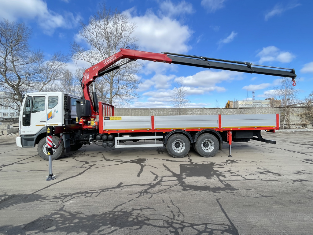 Монтаж КМУ выполнила компания РУСТРАК, она же изготовила высококачественный, вместительный борт.