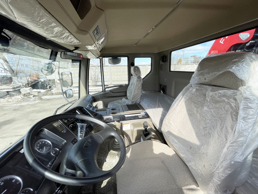 Грузоподъемность автомобиля составляет 17 т, для размещения которых предусмотрен весьма вместительный борт, с габаритами 8000 х 2550 х600 мм, выполненный из алюминия, со съемными стойками.