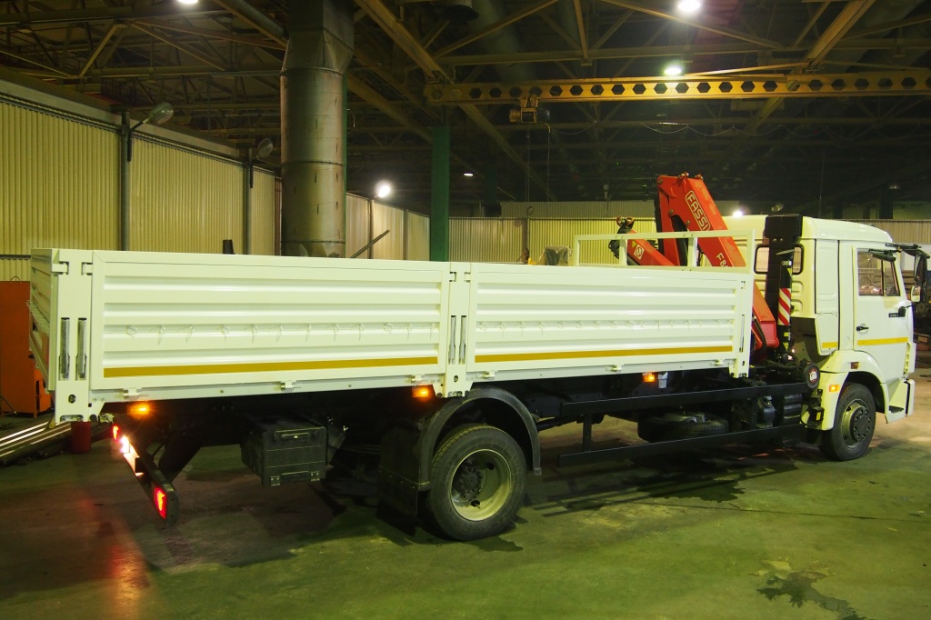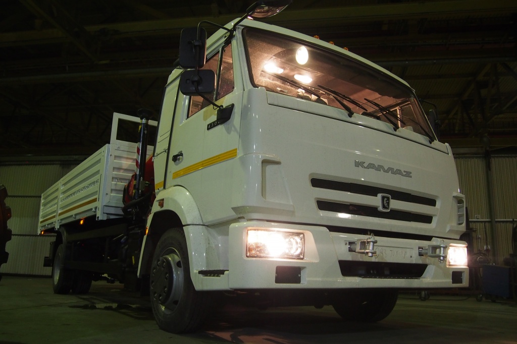 Четыре новых бортовых автомобиля КАМАЗ 65117 оснащенные кранами F245A.0.22, успешно пройдя испытания, приступили к работе сразу после Нового года.