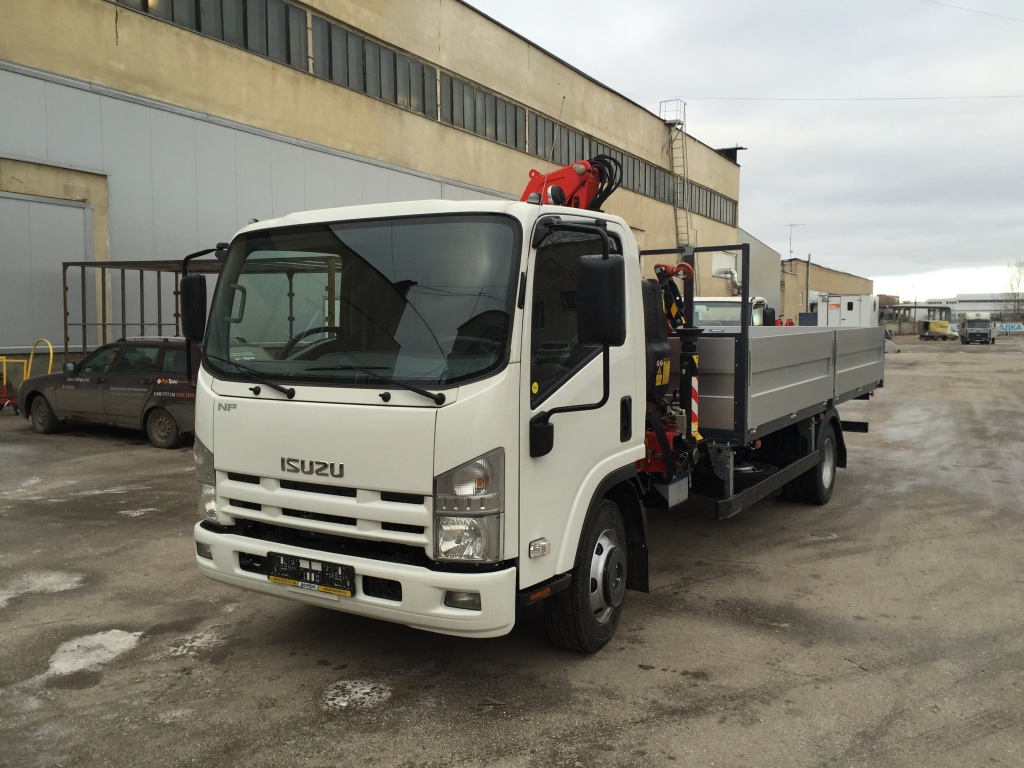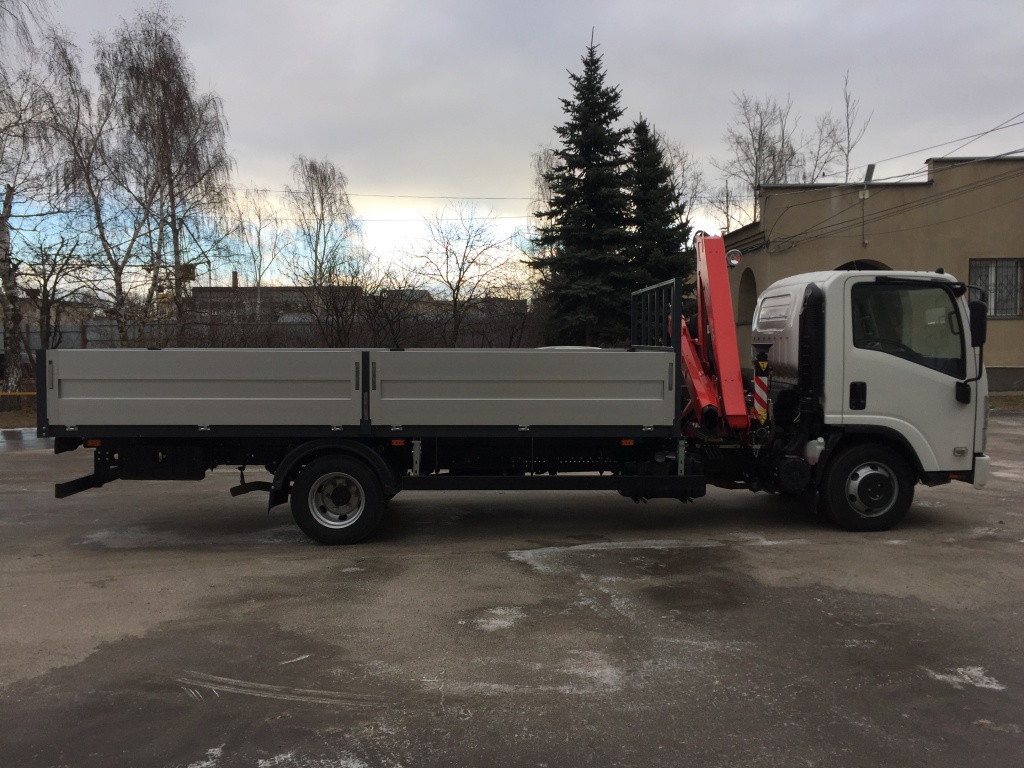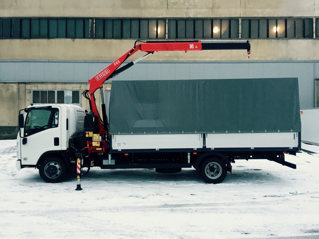 Компания РусТрак, смонтировав на шасси ISUZU NP75 кран F65A.0.21, до-оснастила автомобиль бортом-тентом.