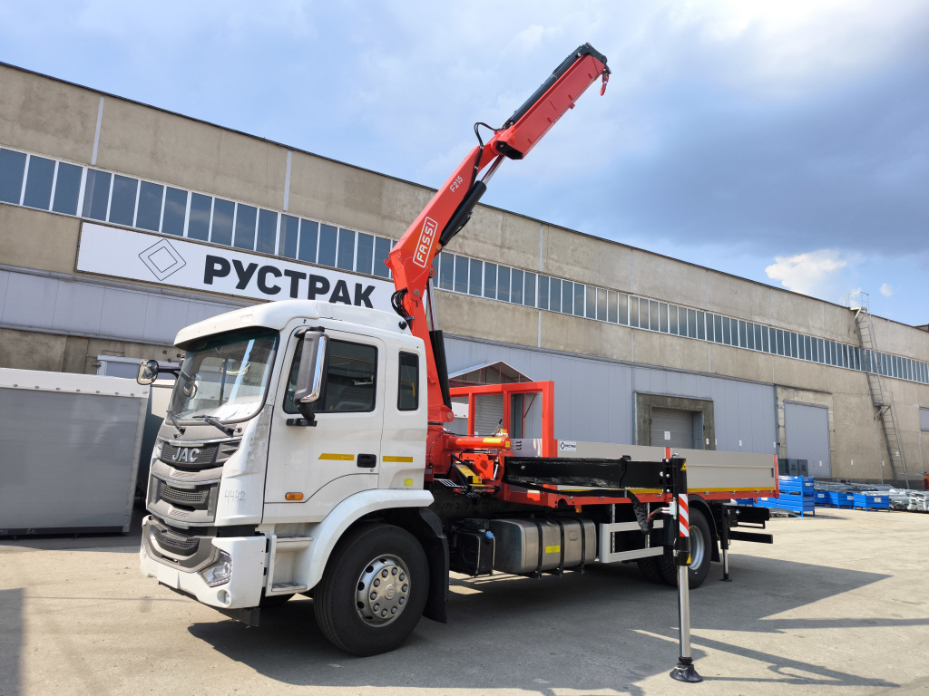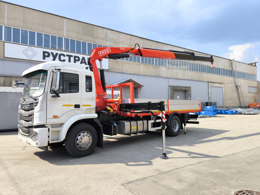 На базе JAC N200 Normal 4 х 2, за кабиной был установлен Fassi F215A.0.22 (максимальная грузоподъемность 9,2 т (!), максимальный вылет 8,05 м- 2315кг), а из высококачественного алюминиевого профиля была изготовлена вместительная платформа, длиной 6,5 м, с удобными откидными бортами.