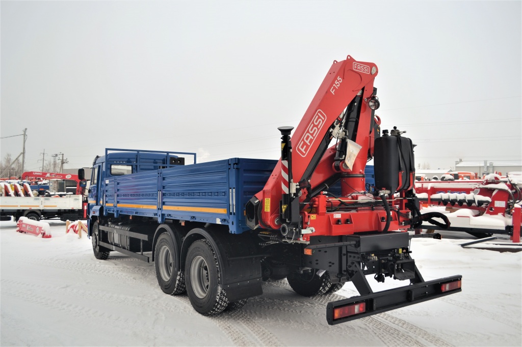 КАМАЗ 65117 c КМУ Fassi F155 на заднем свесе.