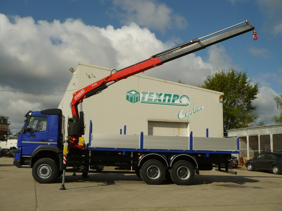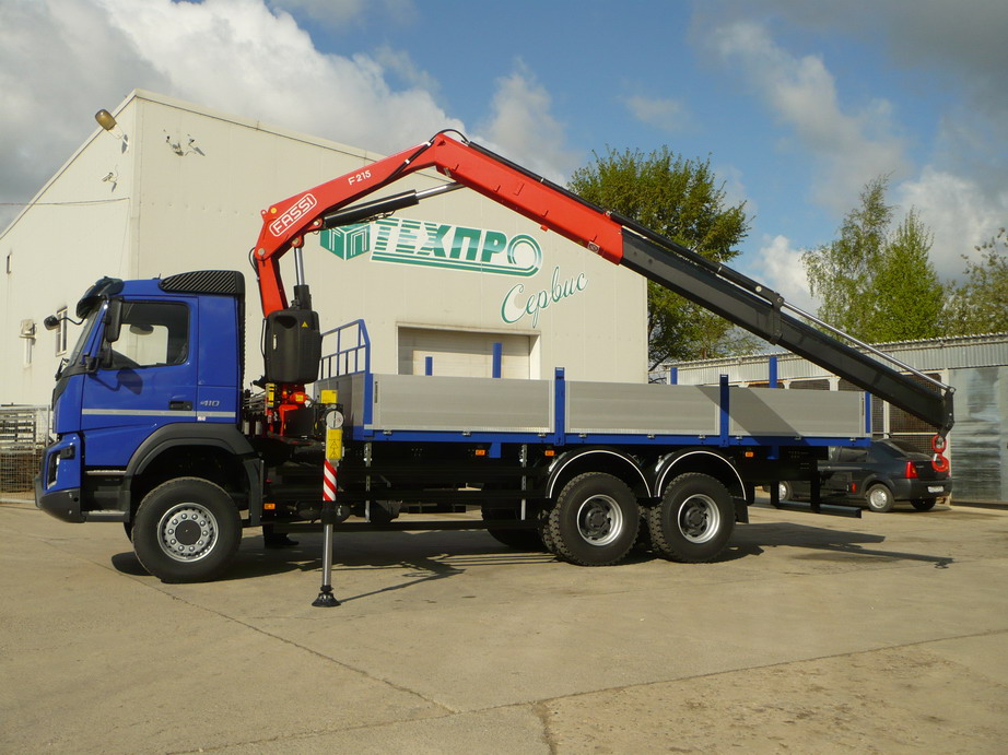 Компания ТЕХПРО, являющаяся дилером FASSI в Калужской области и специализирующаяся на производстве автофургонов, представила новый бортовой автомобиль VOLVO FMX410 с манипулятором. Эту новинку с одиннадцатилитровым объемом двигателя и новой модифицированной кабиной ТЕХПРО оборудовали КМУ FASSI F215A.0.22 (г/м 18,86 тм) и 6,8-метровым алюминевым бортом с «кониками».