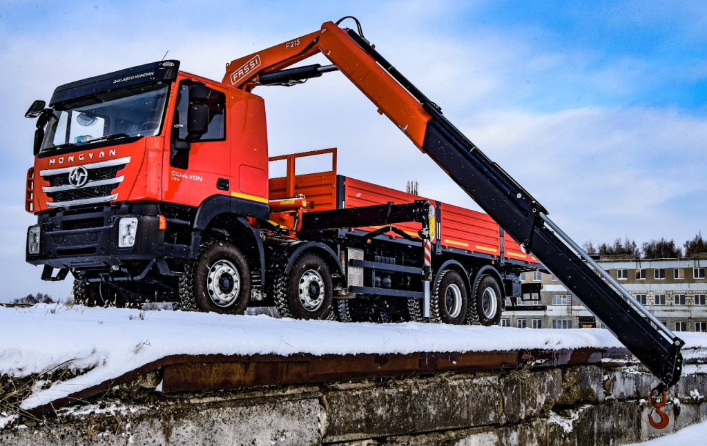 Мощный грузовик, вместительный борт и кран-манипулятор, компактно складывающийся за кабиной, которому многое под силу.
